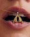 Een prachtige clitoris hanger van goud vergulde messing. Heel fraai is een parel in de hood geplaatst.