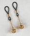 Verleidelijke appeltjes van goud versieren je tepels om in te bijten! Tepelsieraden met niet-piercing, pijnloze en verschuifbare lasso-sluiting. Een fijn concept, waarmee je zelf de druk op je tepels kunt bepalen. Het sieraad is tevens een effectief speeltje waarmee je je tepels gevoelig kunt maken door deze een kwartiertje ferm, strak te klemmen. Je stremt daardoor de doorbloeding, die de tepels daarna extra gevoelig maakt. Opwindend!