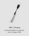 Laad de toy 2,5 uur op voor een gebruiksduur van ongeveer 5 uur. De USB-poort wordt zichtbaar door de punt los te draaien (kabel inbegrepen).