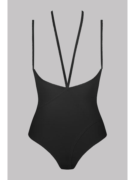 Petit Secret van Maison Close is de collectie met voor elk item een verleidelijk geheim. De prachtig comfortabele bodystring is gemaakt van ondoorzichtige microvezel met een elegante elastische picot-afwerking. Het nauwsluitende model is verfijnd gestructureerd met twee gekruiste banden en een spannend open kruisje.
