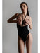 Mooi detail is het grafische sensuele silhouet onder de borsten. De body heeft een elastisch picot-harnas, waarvan de schouderbandjes verstelbaar zijn. Ook hier een opvallend detail et de chique ton-sur-ton detail afwerking.