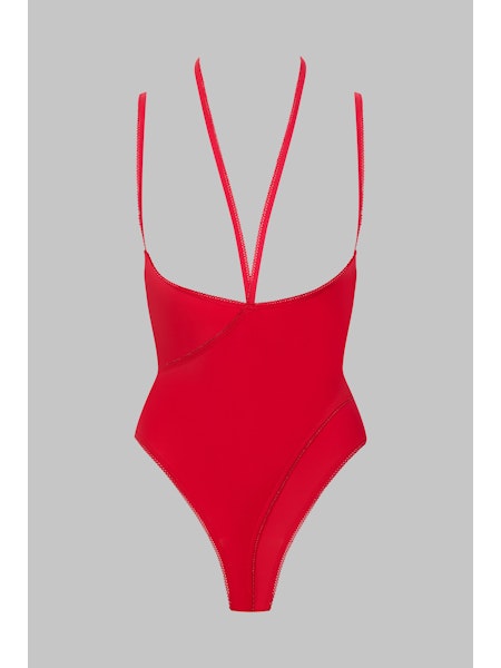 Petit Secret van Maison Close is de collectie met voor elk item een verleidelijk geheim. De prachtig comfortabele bodystring is gemaakt van ondoorzichtige microvezel met een elegante elastische picot-afwerking. Het nauwsluitende model is verfijnd gestructureerd met twee gekruiste banden en een spannend open kruisje.